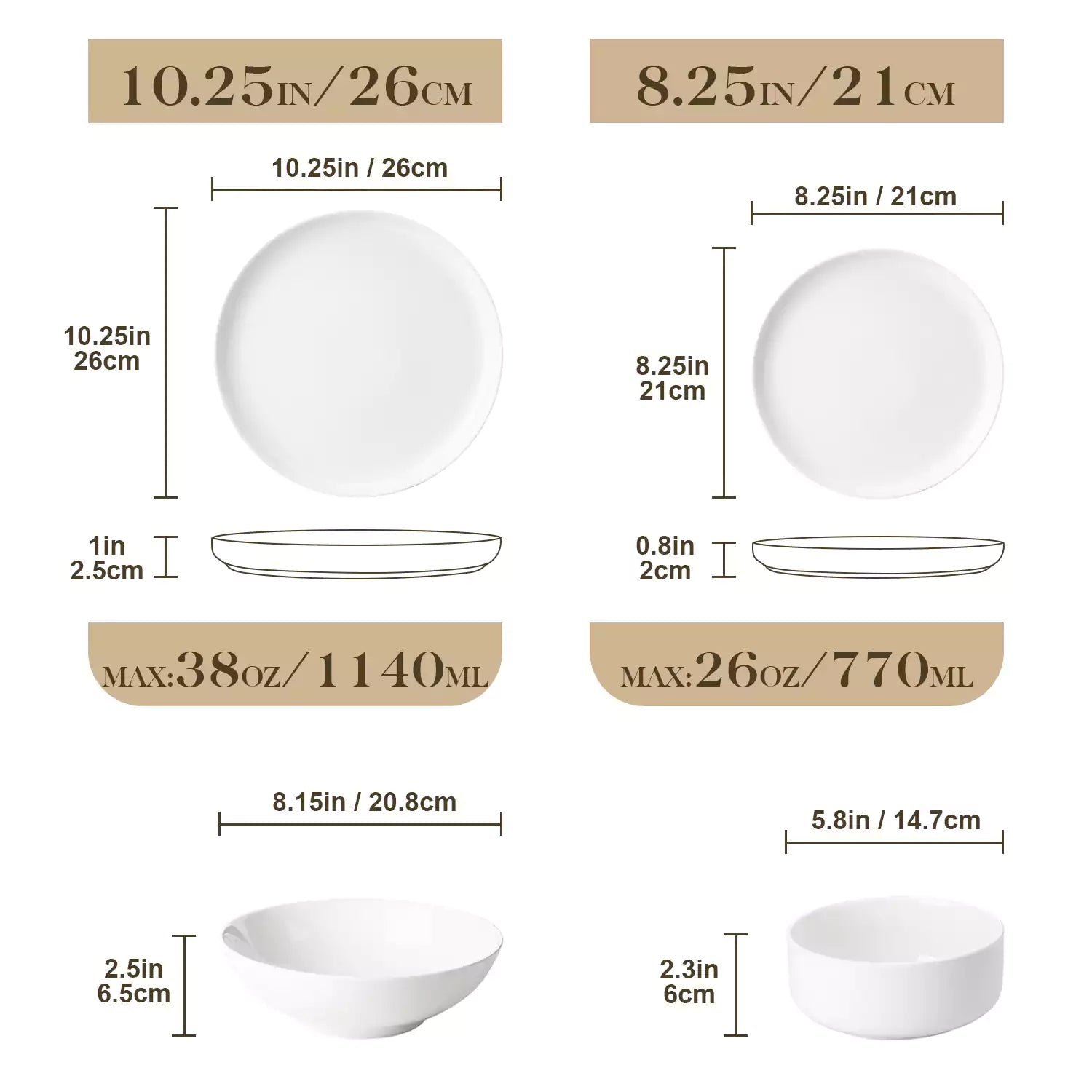 MALACASA Flat Round Luna 24 Piece Dinnerware Set with Soup Plates and Bowls - Ivory White#color_ivory-white