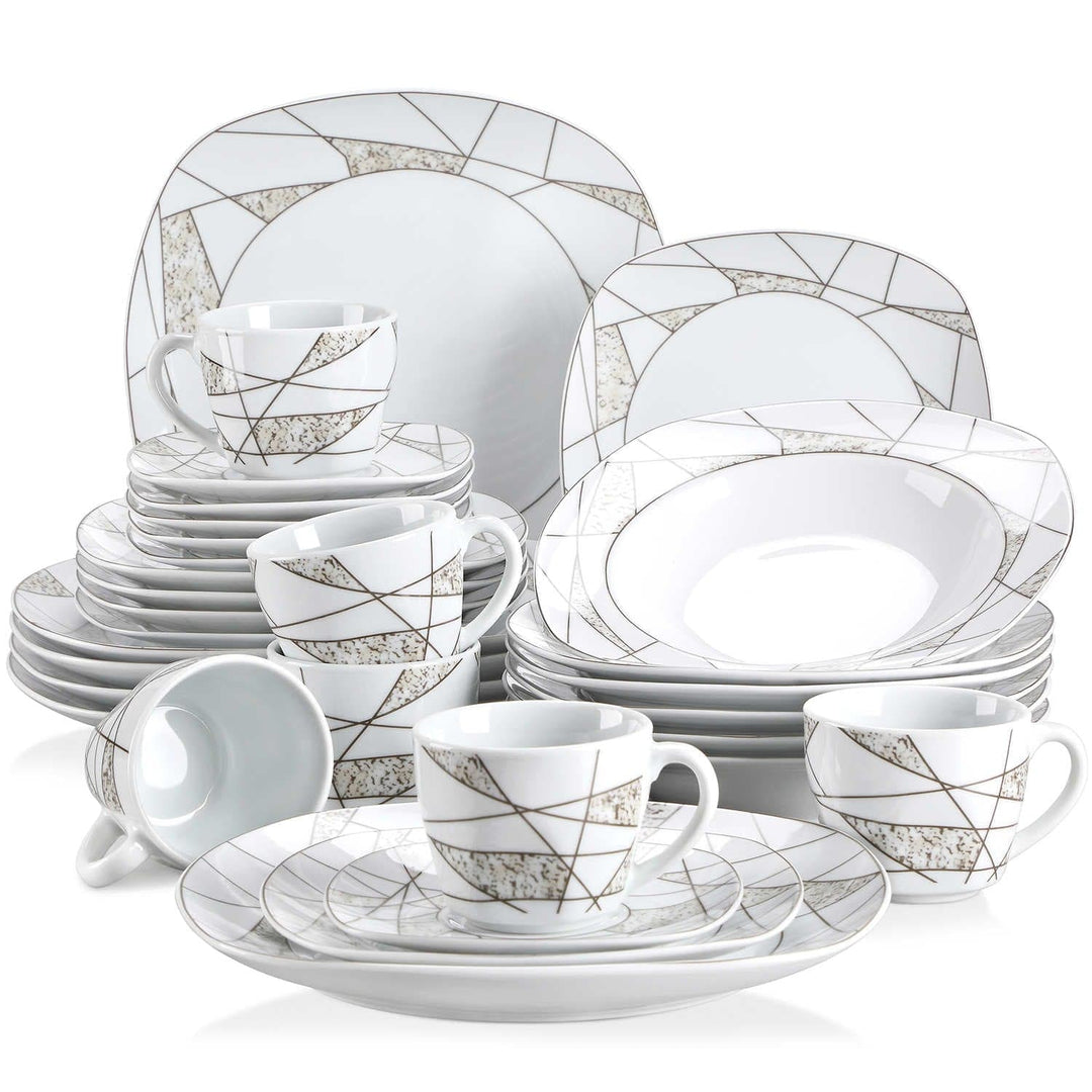 • Fine porcelain square dinnerware set, service for 6, irregular pattern
