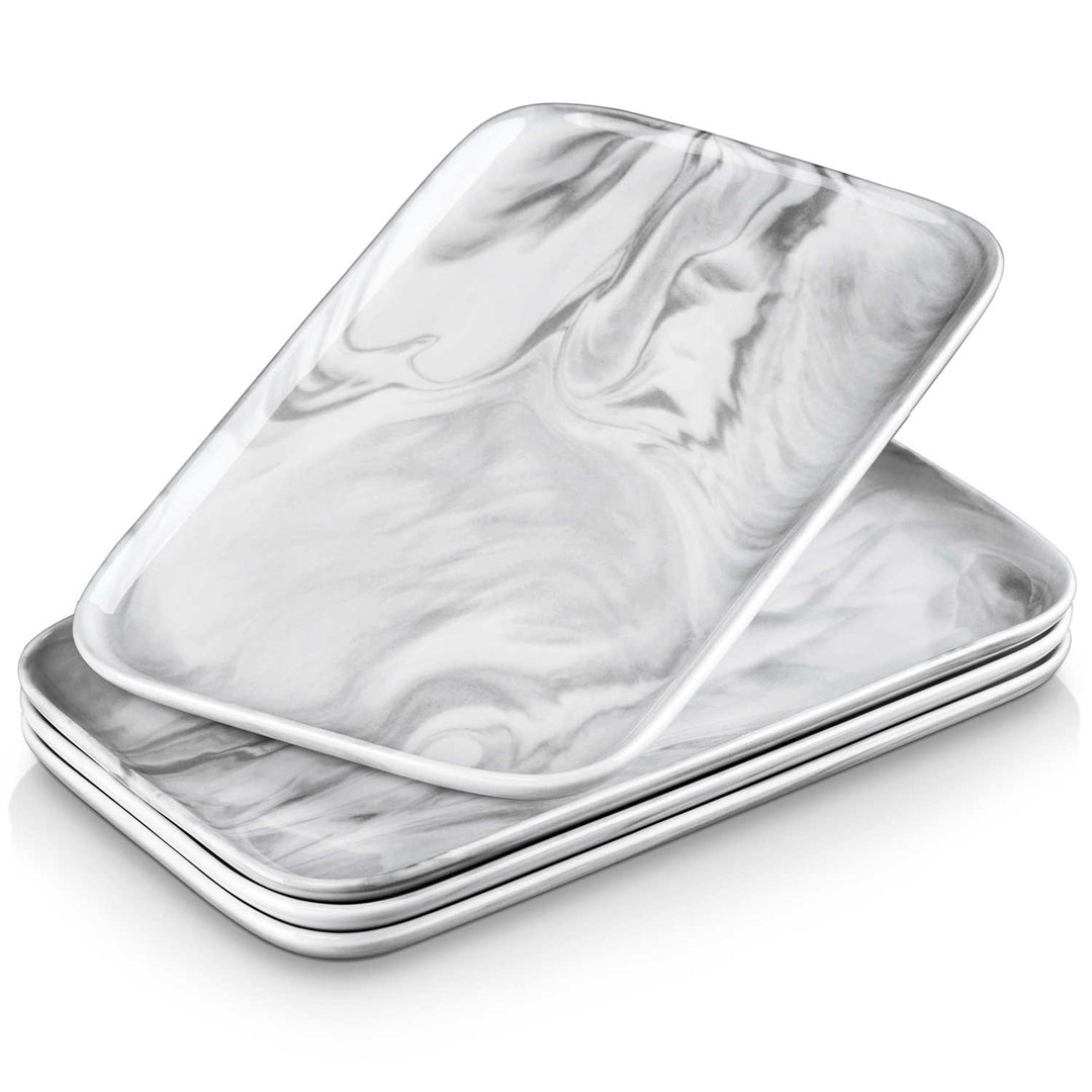 • Fine porcelain rectangular plates, set of 4, marble grey