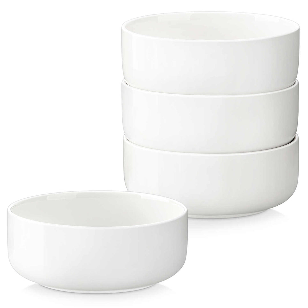 MALACASA Flat Round Luna Cereal Bowls Set of 4 - Ivory White