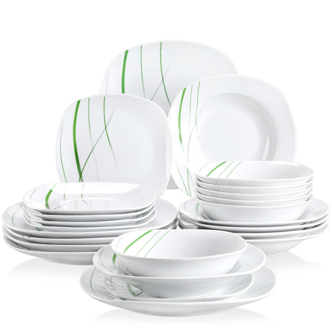 • Porcelana fina vajilla cuadrada, servicio para 6, patrón de raya verde