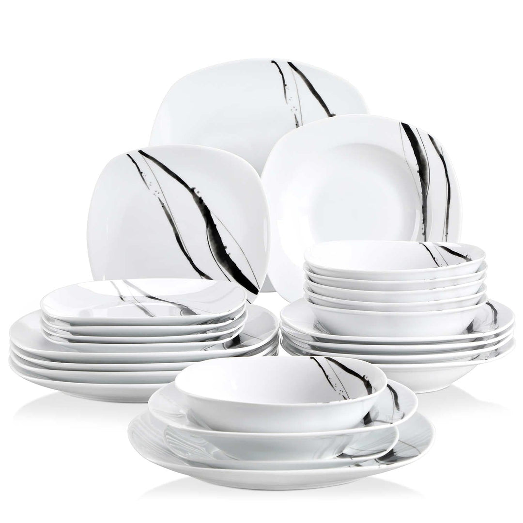 - Juego de vajilla cuadrada de porcelana fina, servicio para 6, tinta y patrón de líneas