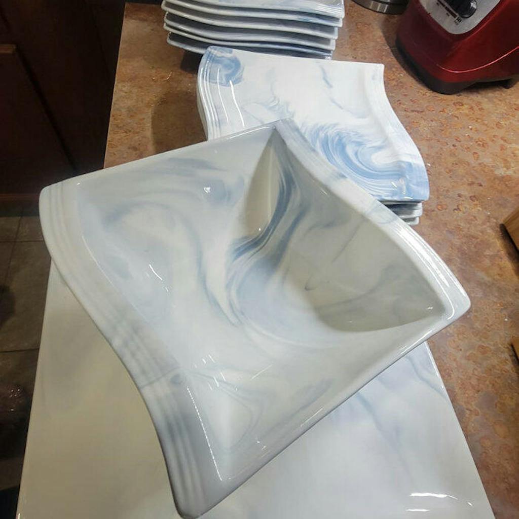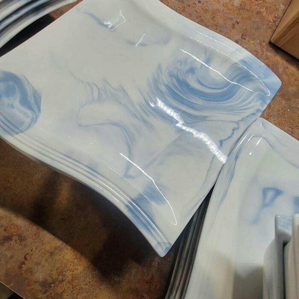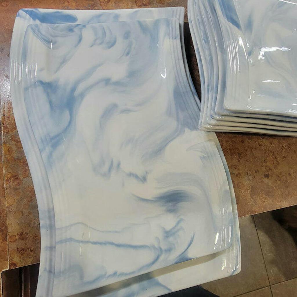 El Flora El juego de 26 piezas combina elegancia y funcionalidad, elaborado con porcelana de primera calidad en blanco marfil o gris, azul y rosa inspirados en el mármol. Su forma cuadrada ondulada y su diseño geométrico crean una estética elegante y moderna. Con capacidad para seis personas, el juego incluye platos llanos, platos para ensalada, platos hondos, tazones para cereales y dos platos versátiles para servir. Es duradero y apilable para un fácil almacenamiento, apto para microondas, horno y lavavajillas. Inspirado en las flores en flor, Flora Aporta un toque fresco y contemporáneo a las comidas cotidianas o a ocasiones especiales.