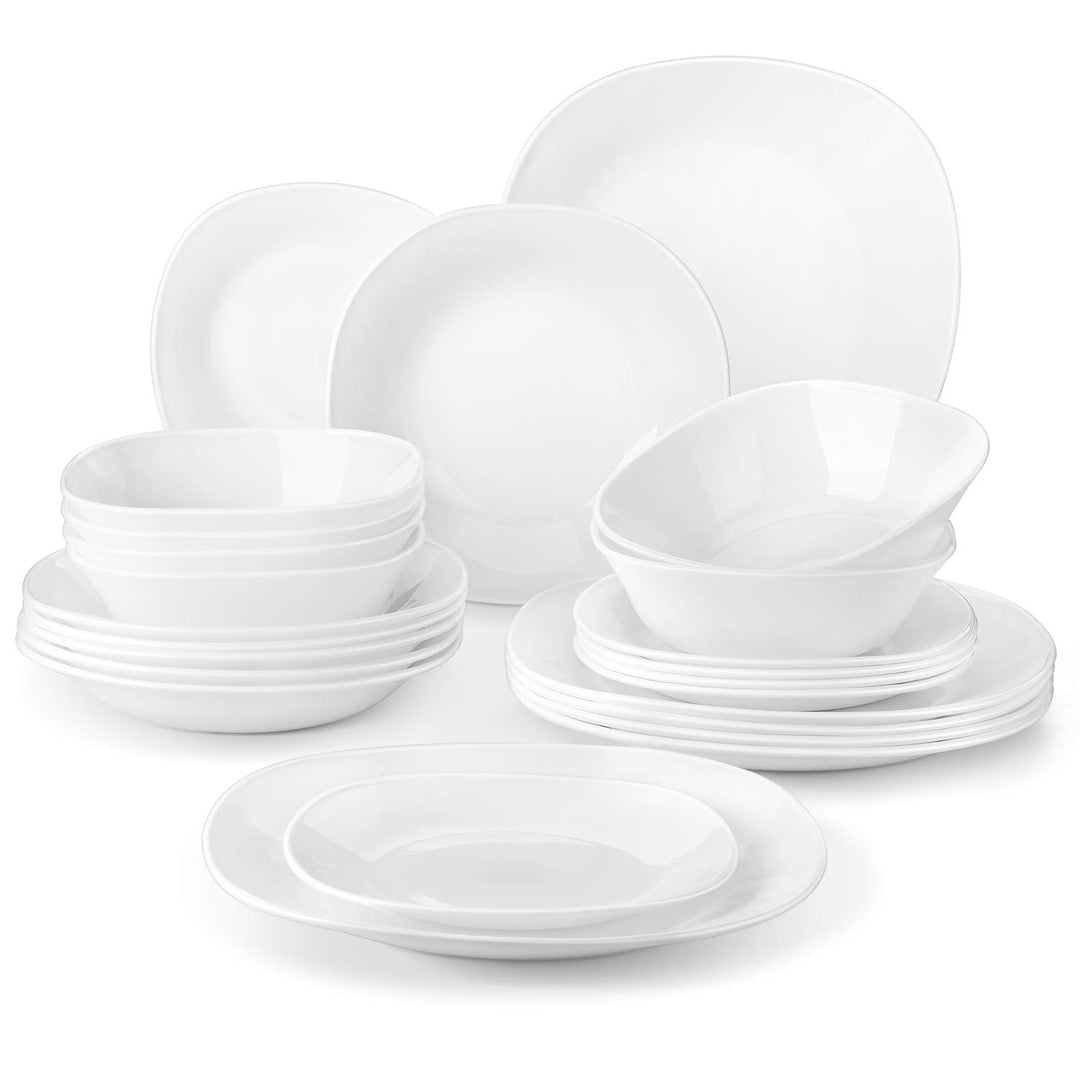 - Service de vaisselle de forme carrée et ronde en verre opale, service pour 6, blanc élégant