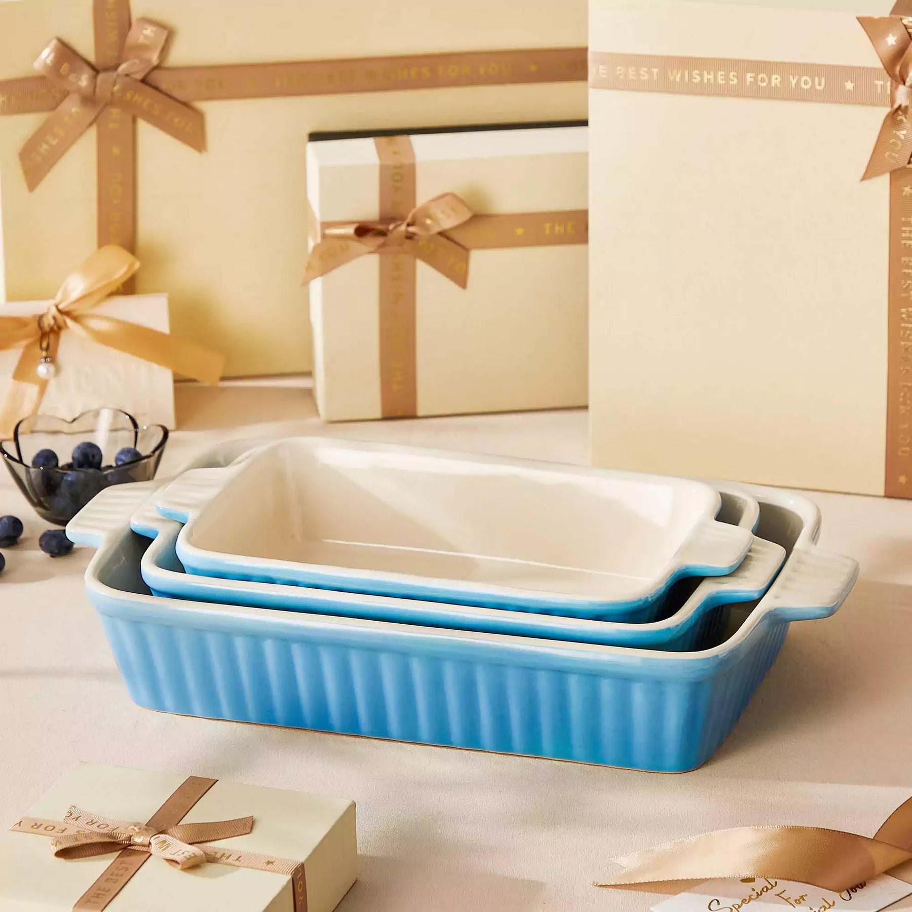 | Set Includes | 3 baking dishes: ① 14.7'' (37.5cm) ② 12.2" (31.1cm) ③ 11.1" (28.3cm) |