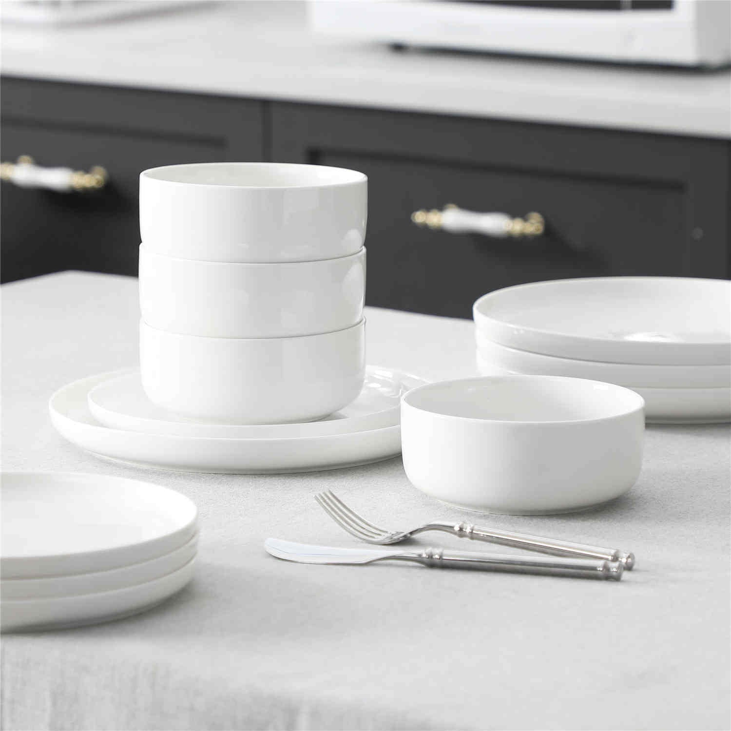 Flat Round Luna 24 Piece Dinnerware Set for 8 - Ivory White