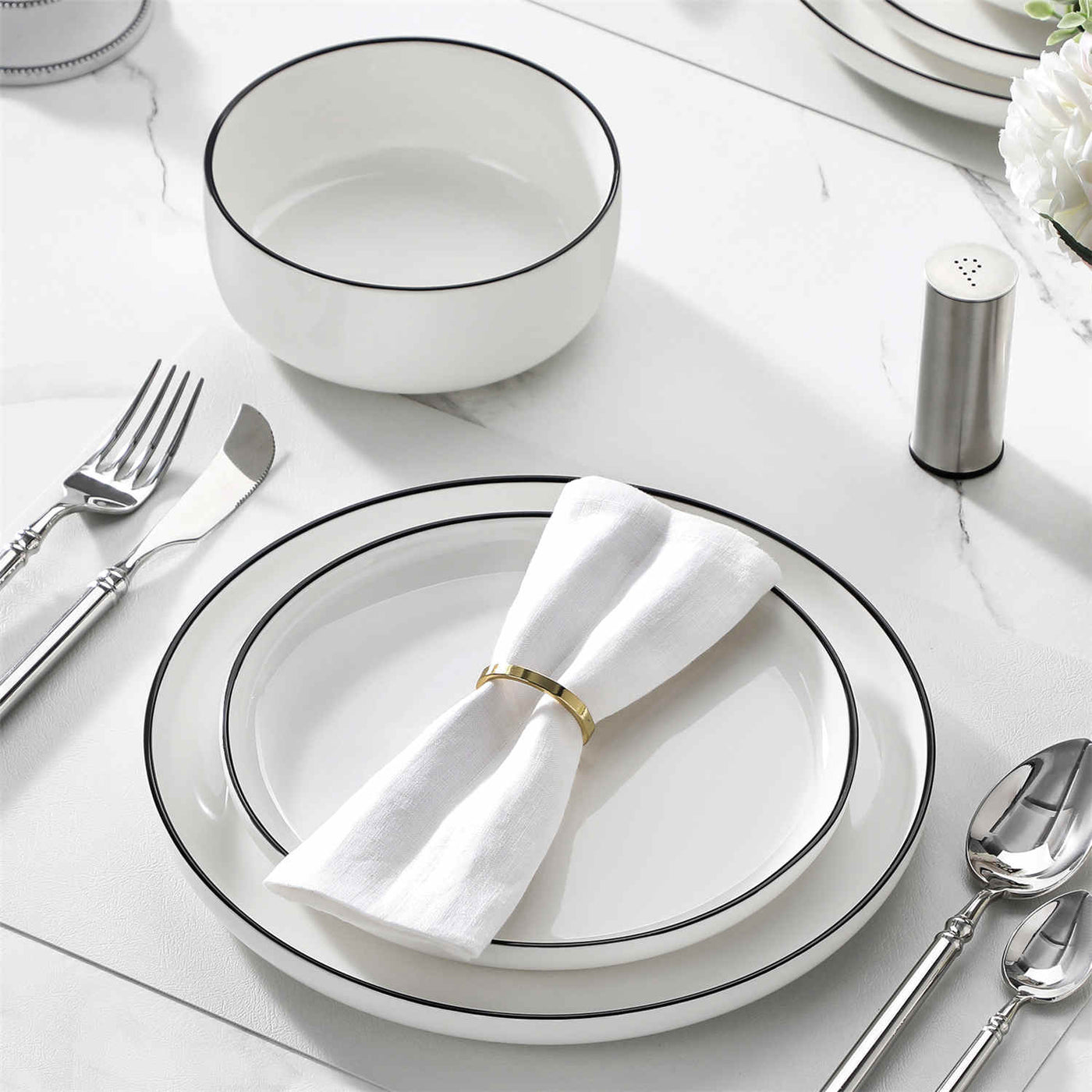 Flat Round Luna 24 Piece Dinnerware Set Service for 8- Black Trim