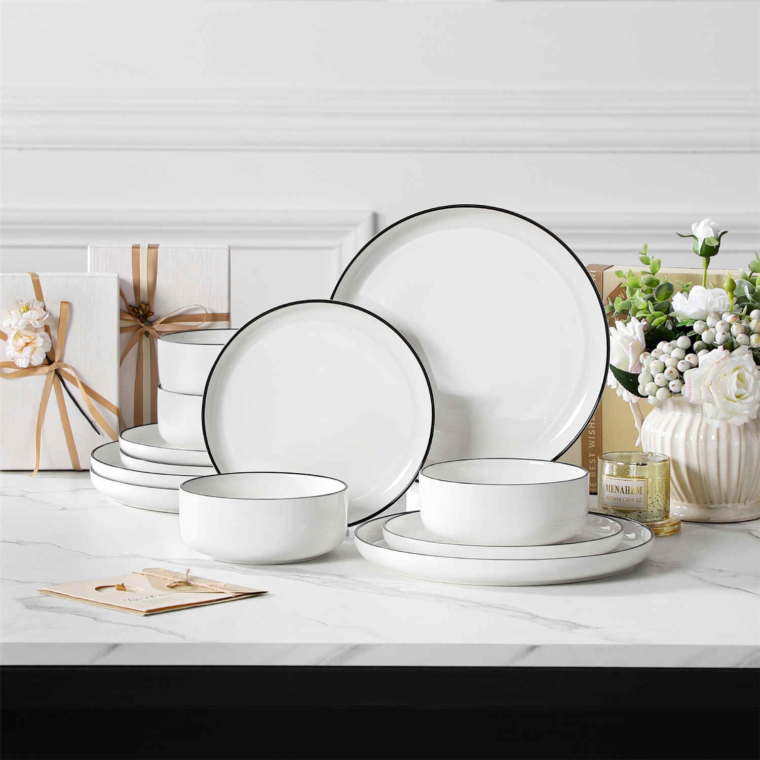 Flat Round Luna 24 Piece Dinnerware Set for 8 - Black Trim