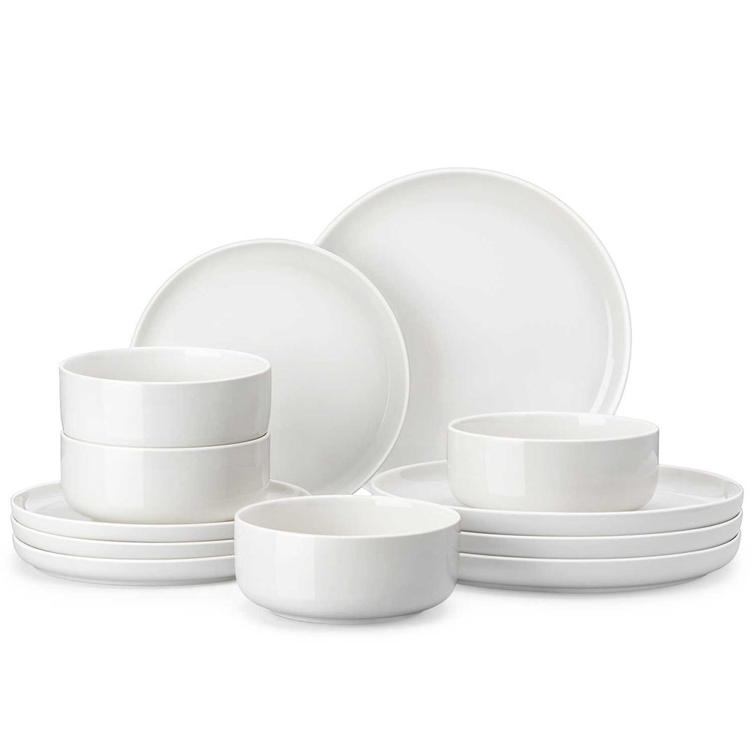 Flat Round Luna 12 Piece Dinnerware Set - Ivory White#color_ivory-white