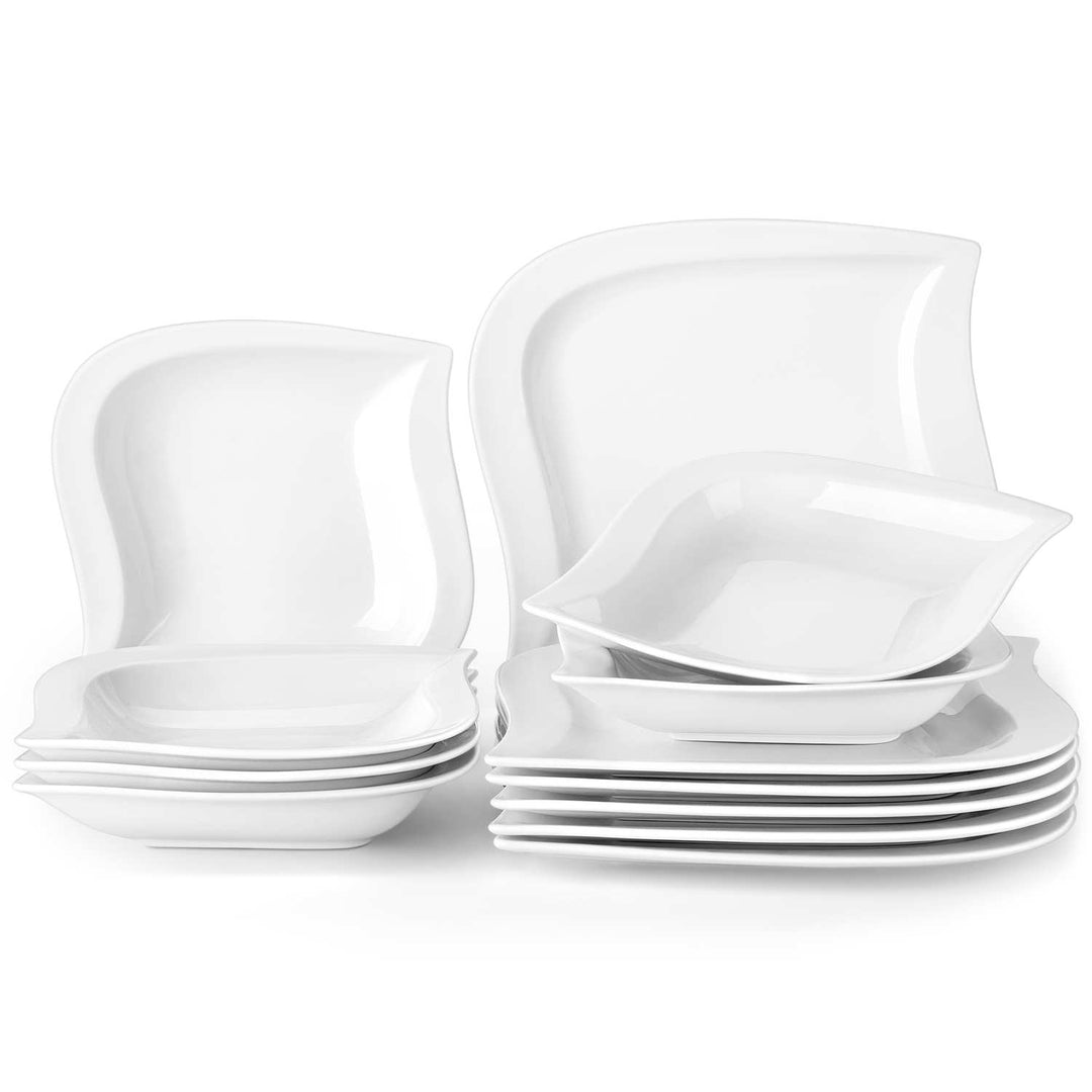 • Set di stoviglie quadrate a forma di foglia di porcellana fine, servizio per 6, bianco avorio