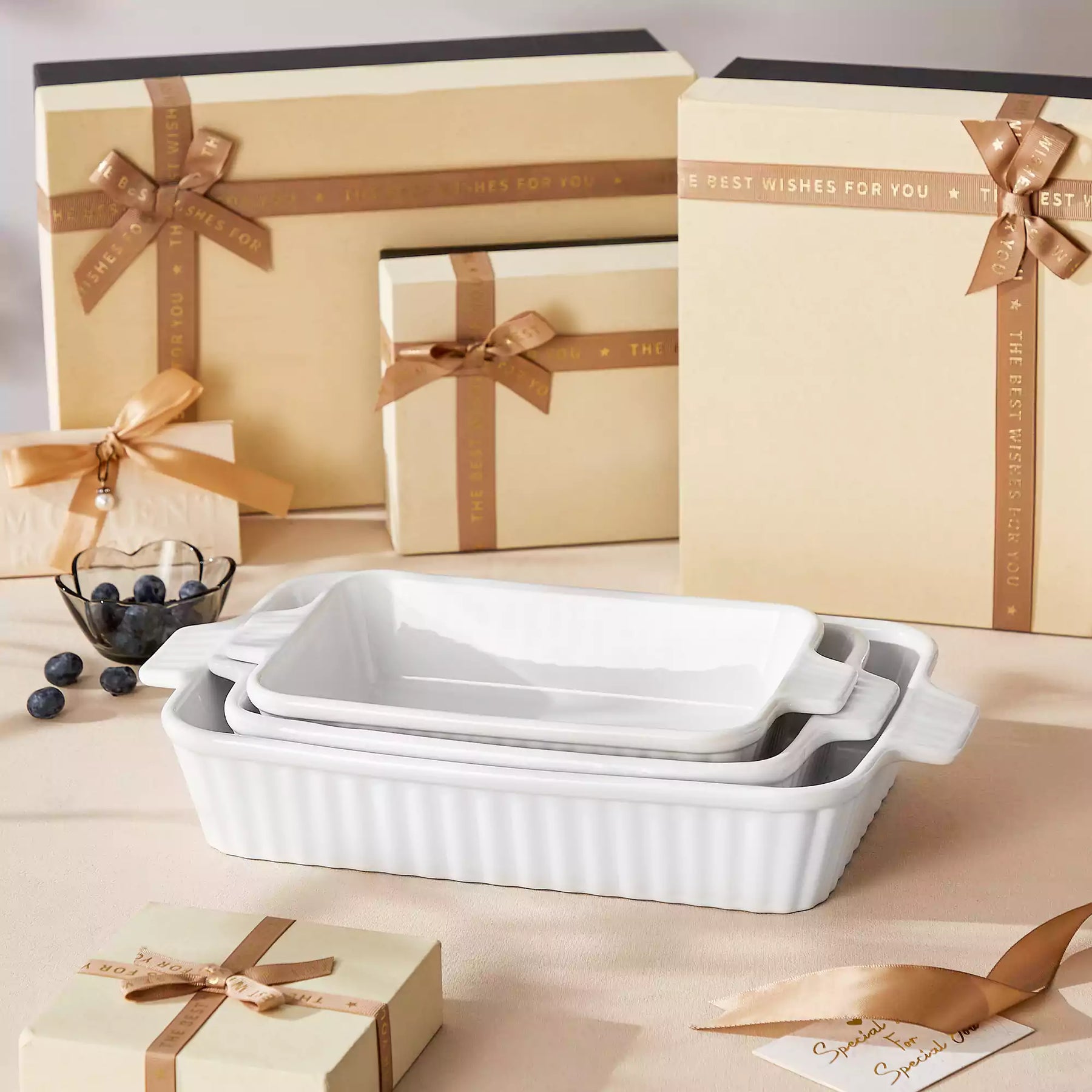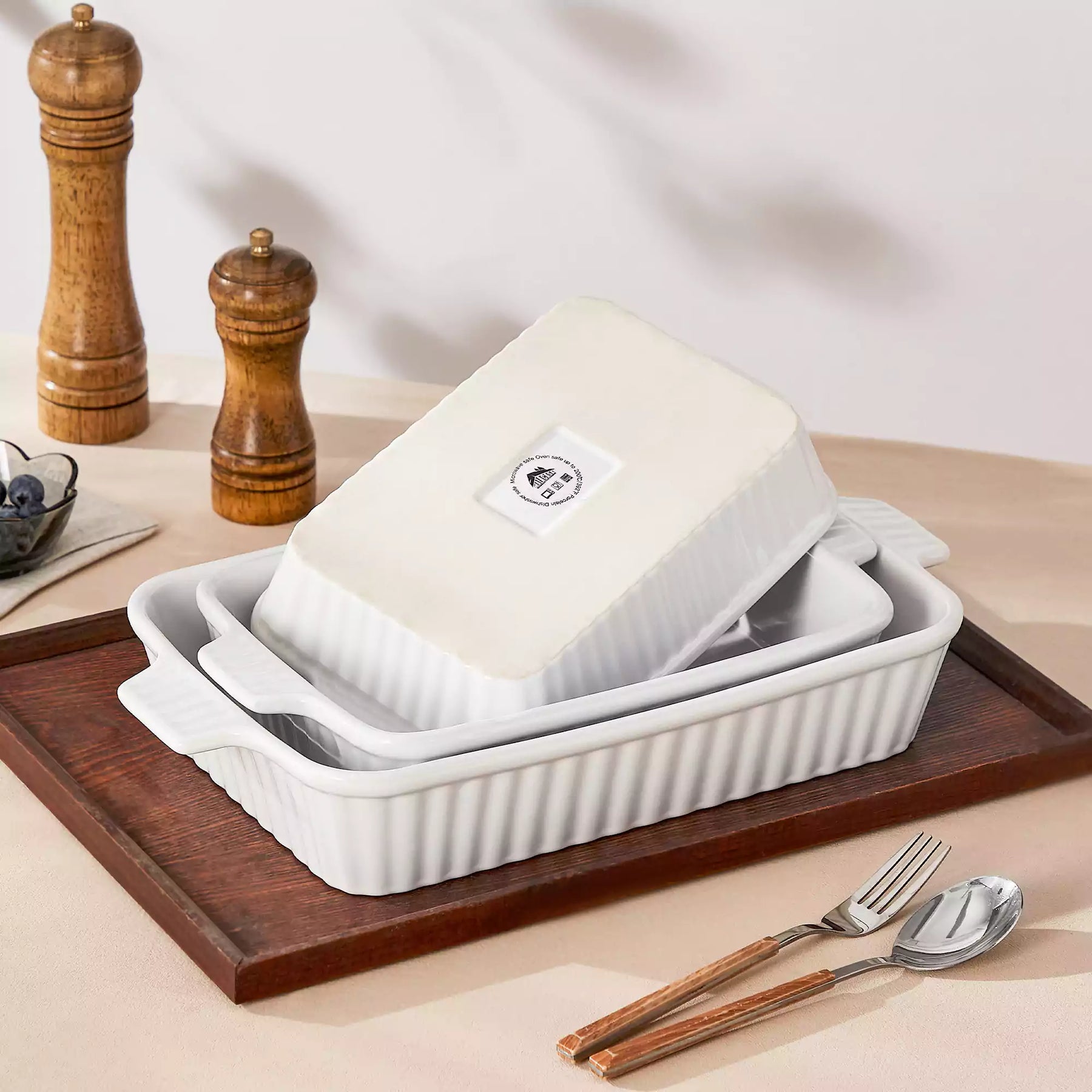 | Set Includes | 3 baking dishes: ① 14.7'' (37.5cm) ② 12.2" (31.1cm) ③ 11.1" (28.3cm) |