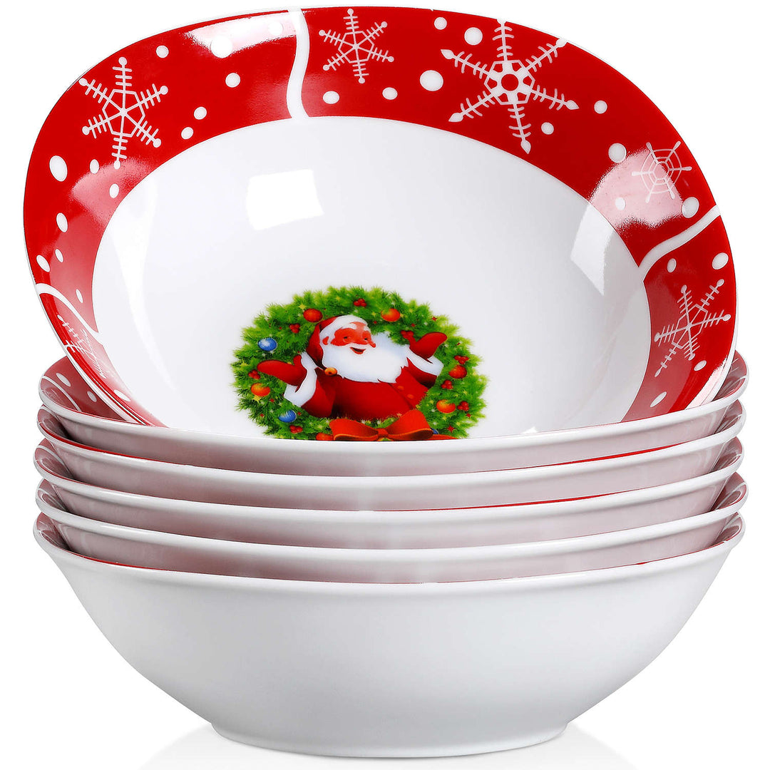 • Set di 6 ciotole per cereali in porcellana, motivo Babbo Natale