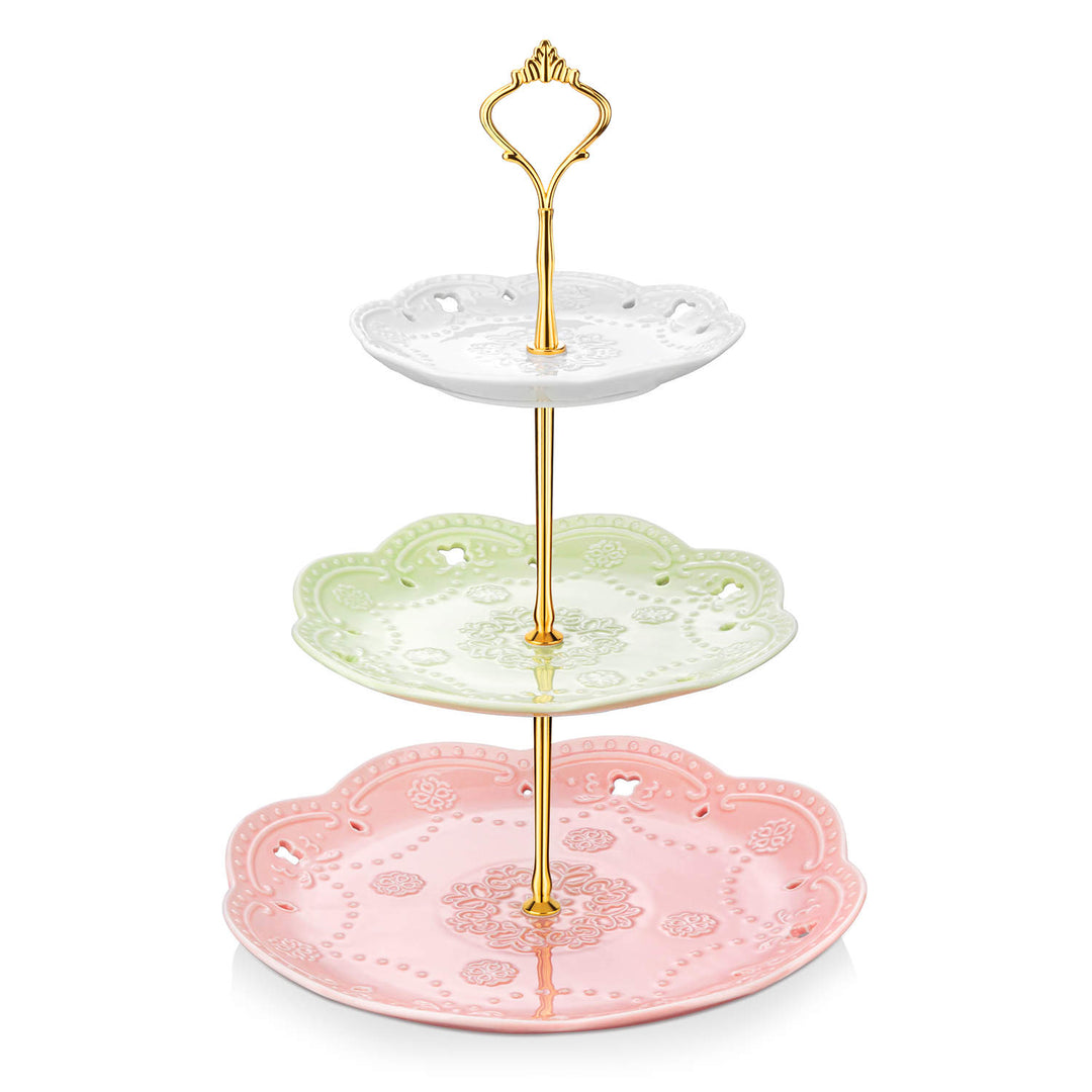 Set IncludesOne 3-tier porcelain cupcake tower stand