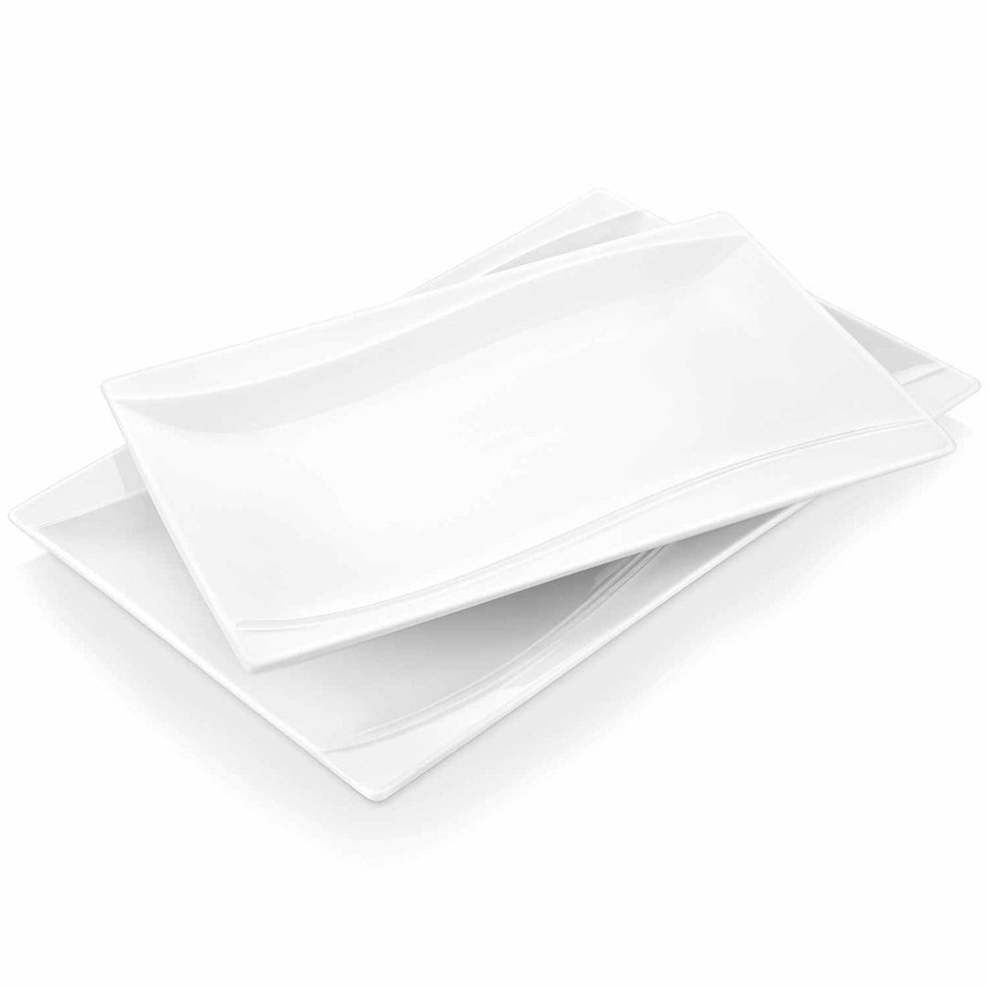 • Fine porcelain rectangular plates, set of 2, ivory white