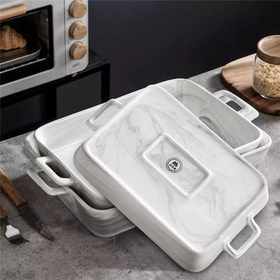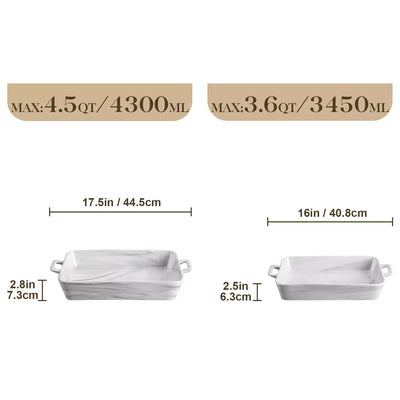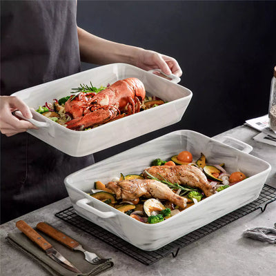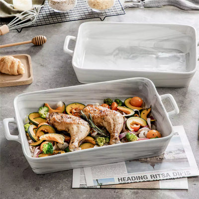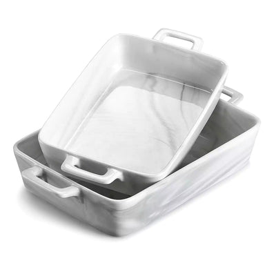 Marble Grey 2-Piece Porcelain Baking Dish Set with Handles