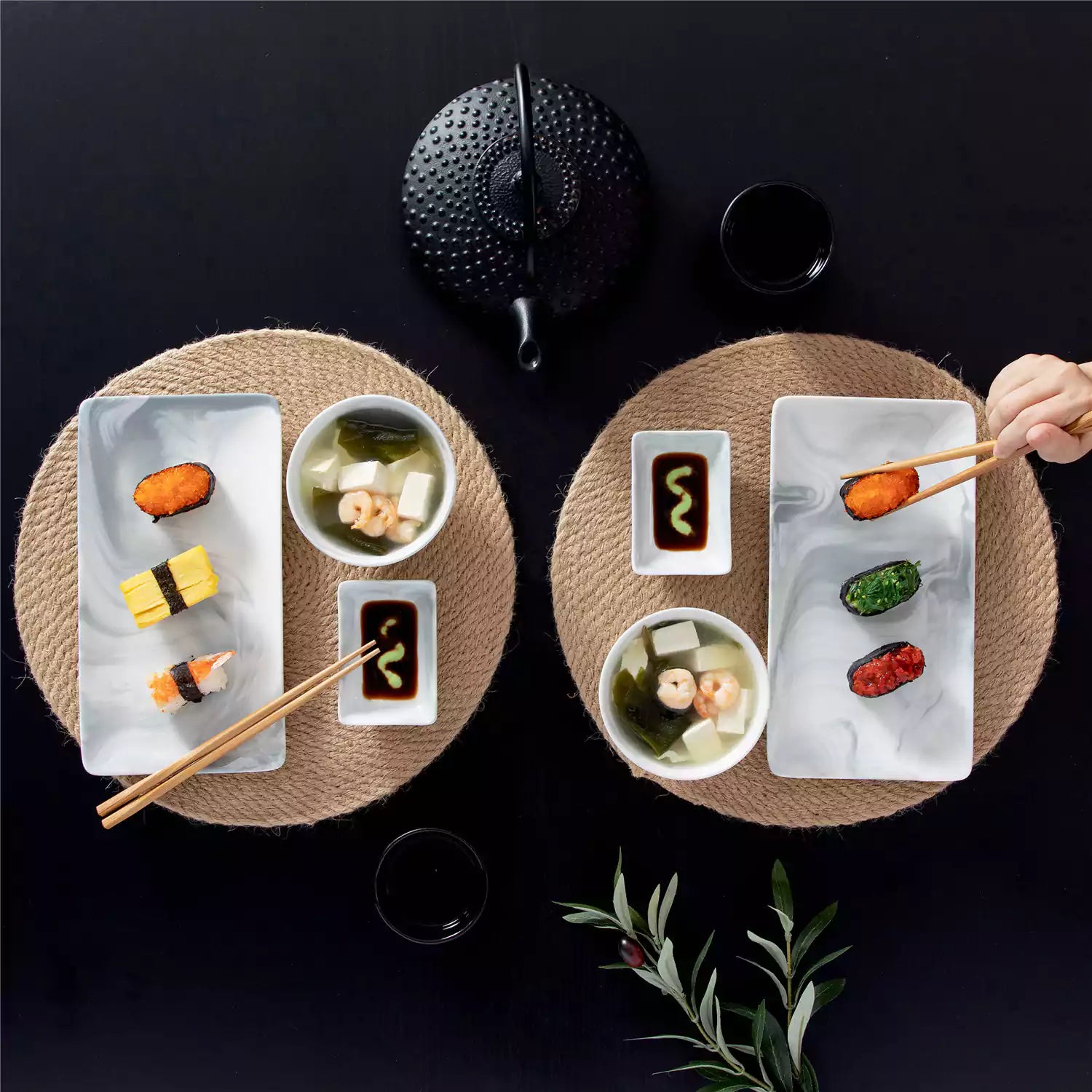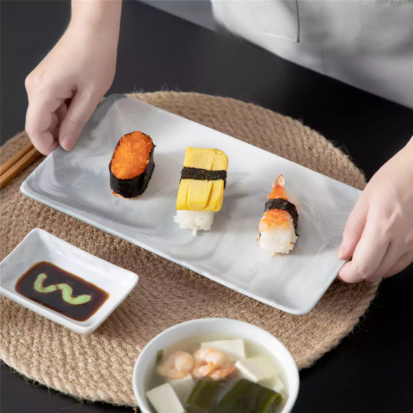 Marble Grey Sushi Dishes Set