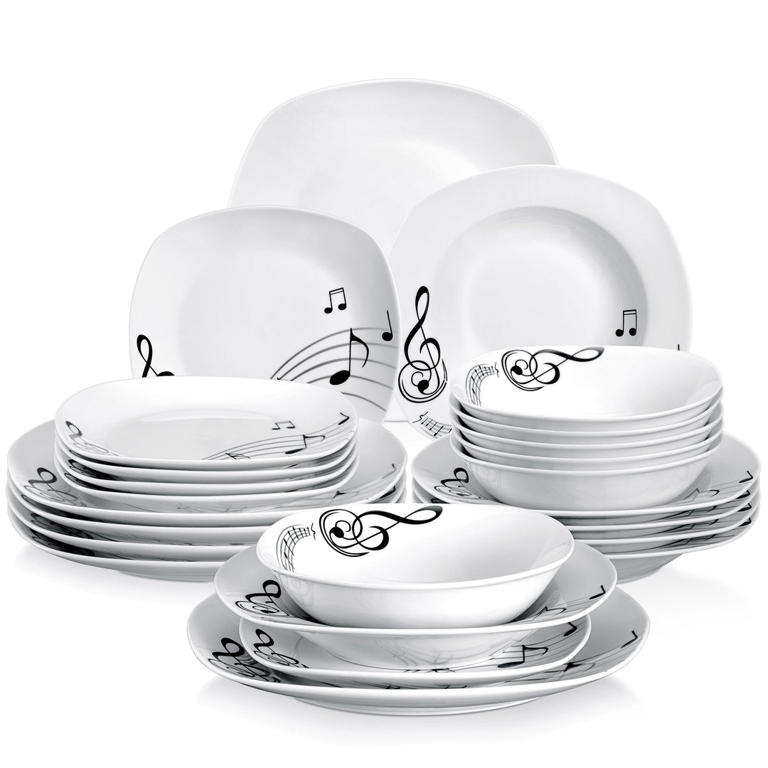 • Fine porcelain square dinnerware set, service for 6, melody pattern