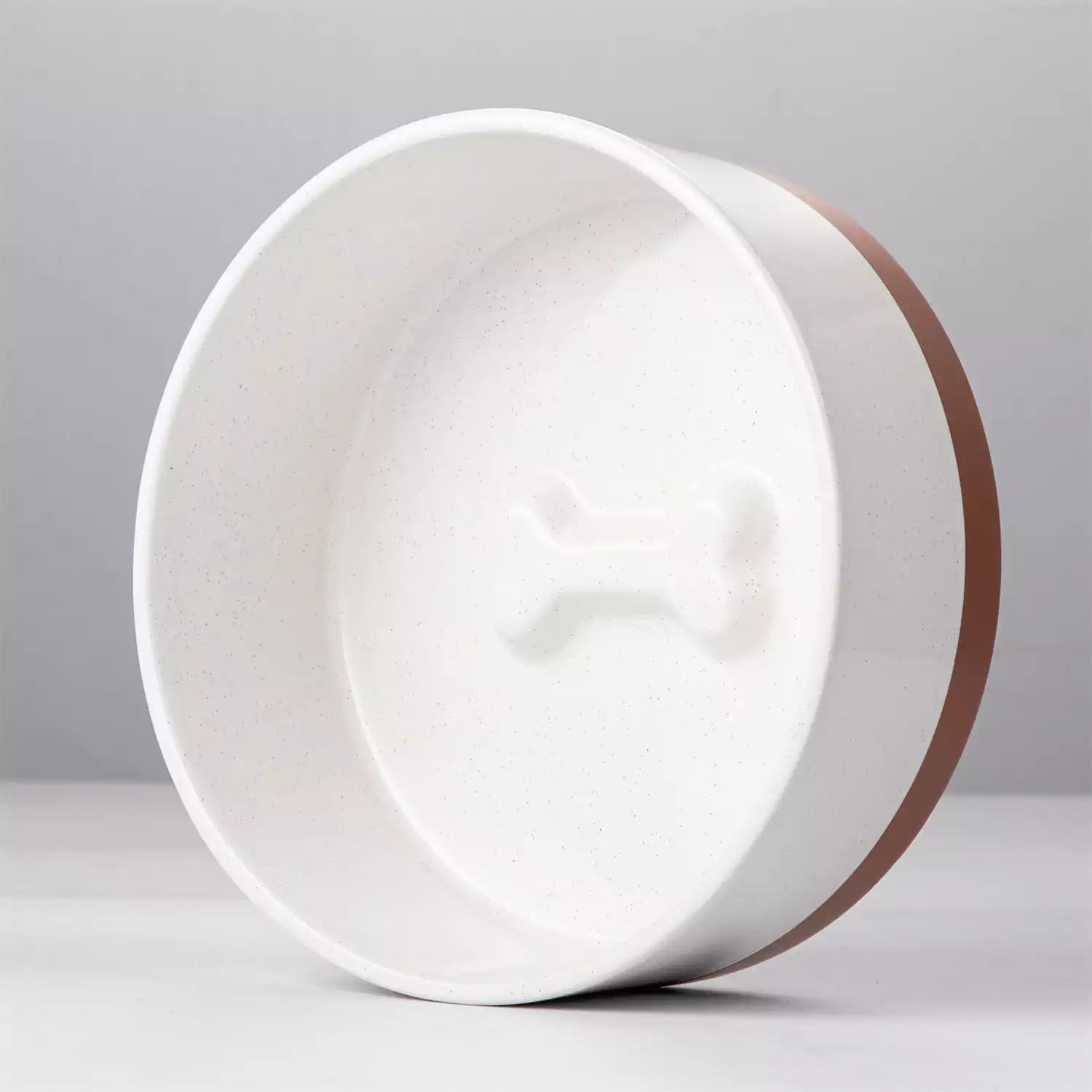 Versatile Tara Dog Bowls with speckled glaze weighted base and bone-shaped cut-out - 6.75 inch
