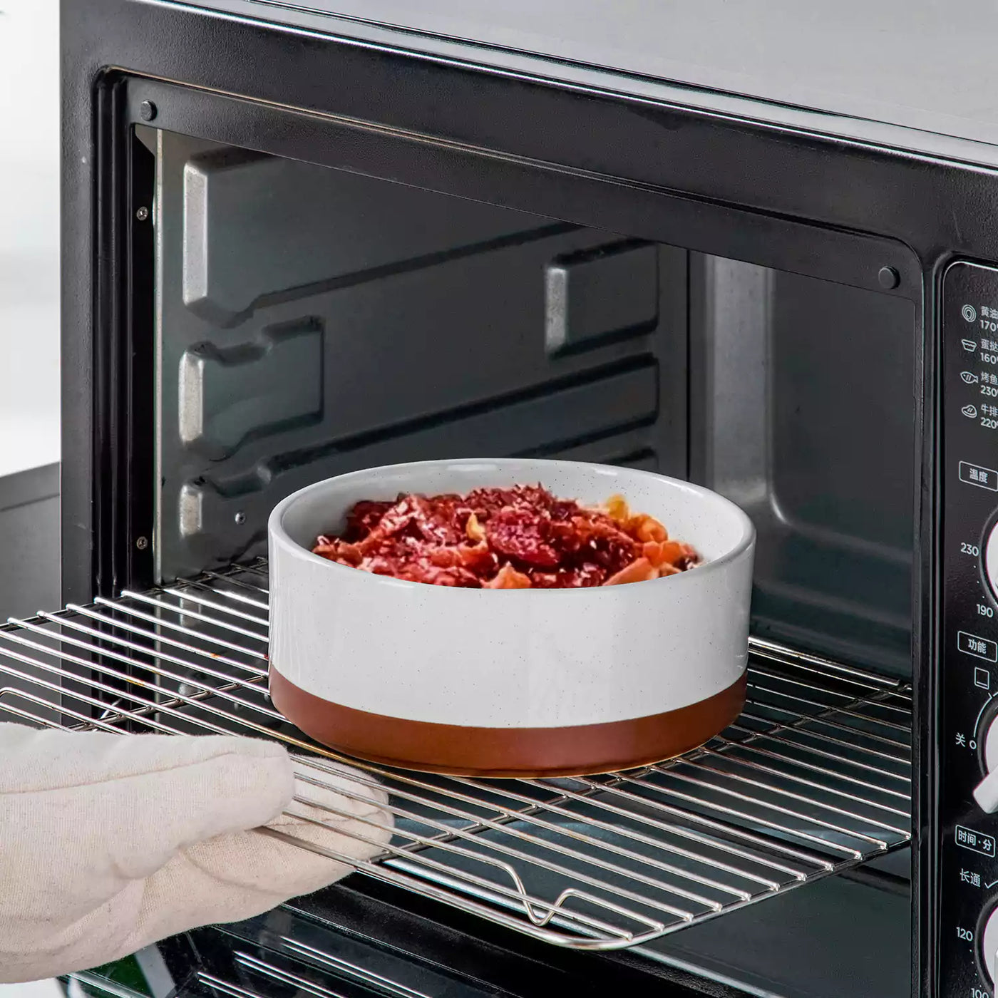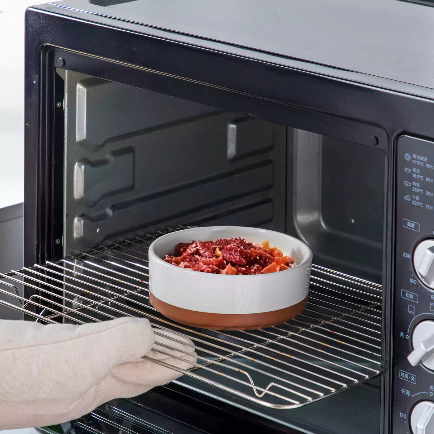 Versatile-sized Tara Dog Bowls, available in 5.5", 6.75", and 8" options, are designed to suit dogs of all sizes—from small breeds like Chihuahuas to larger companions such as Golden Retrievers. The wide, weighted base ensures stability, preventing tipping and minimizing spills, while the thickened walls offer a secure feeding experience and reduce mess. A playful bone-shaped cut-out at the base enhances airflow, keeping the bowl clean and dry. Crafted from durable stoneware with a speckled glaze and matte clay finish, these bowls are microwave- and dishwasher-safe, ensuring effortless cleanup and long-lasting durability. Kindly note: The listed price is for a single bowl.
